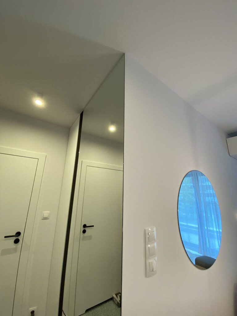 To mieszkanie zostało wykonane dla klienta, który od początku chciał, żeby było bardzo jasne i praktyczne w codziennym użyciu. W kuchni postawiliśmy na klasyczne białe fronty, w połączeniu z ryflowanymi niebieskimi. W łazience nasz Klient zdecydował się na nieco odważniejszą płytkę o kwiatowym wzorze oraz błękitne na podłodze.